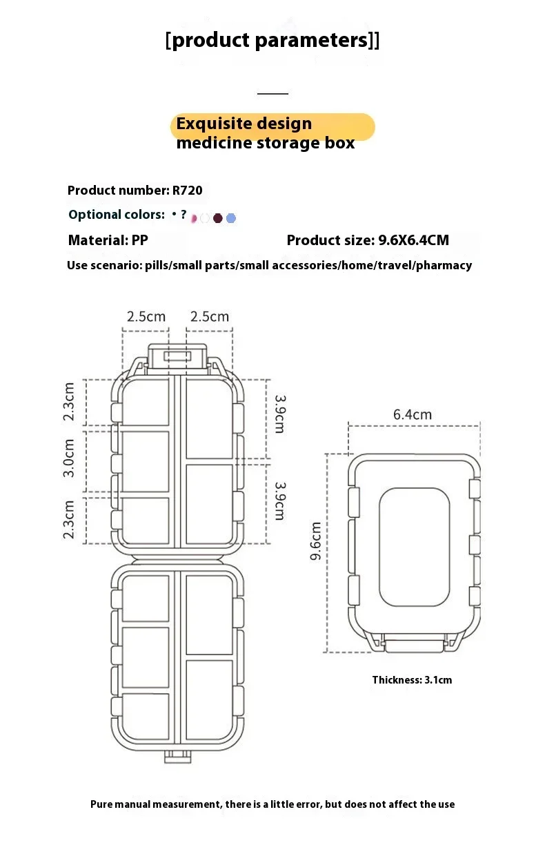 Portable Colorful 3 Spaces Medicine Case Health Care Container Case Pill Box Splitters Travel Pill Box Tiny Box Easy to Carry